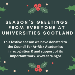 This year, rather than sending out Christmas cards, Universities Scotland have made a donation to Cara (Council for At-Risk Academics) in recognition and to support the important work they do. Cara provides urgently-needed help to academics in immediate danger, those forced into exile, and many who choose to work on in their home countries despite…